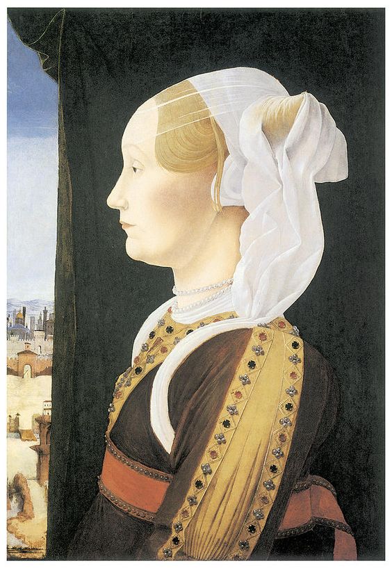 Copricapo femminile. Le donne delle classi alti indossavano veli di seta, mentre le donne del popolo portavano sciarpe di velo.